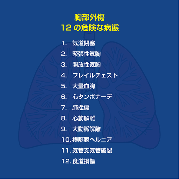 外傷外科医には「ダーティ・ダズン」と呼ばれる胸部外傷の代表的な症状がある。